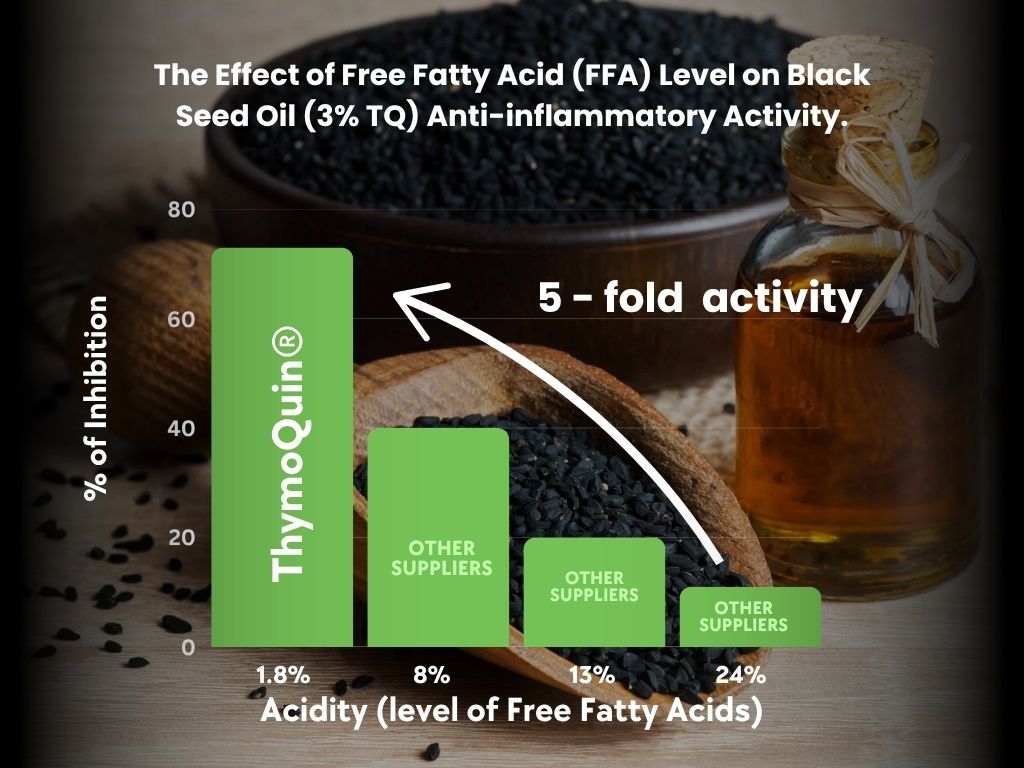 - Only ThymoQuin® has sufficiently low acidity (FFA) levels